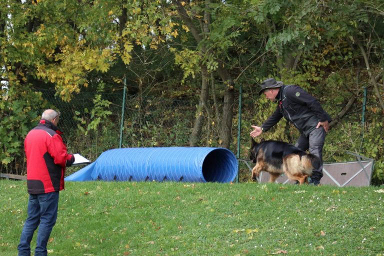 Trotz der Zeitumstellung – für manche mit einer Stunde mehr Schlaf, für andere nach einer kurzen Nacht – trafen sich am 26. Oktober 2025 unsere engagierten Hundeführerinnen und Hundeführer sowie Leistungsrichter Heinz Seitz auf dem Vereinsgelände am Zimmerschlag zur diesjährigen Herbstprüfung der SV OG Böblingen.