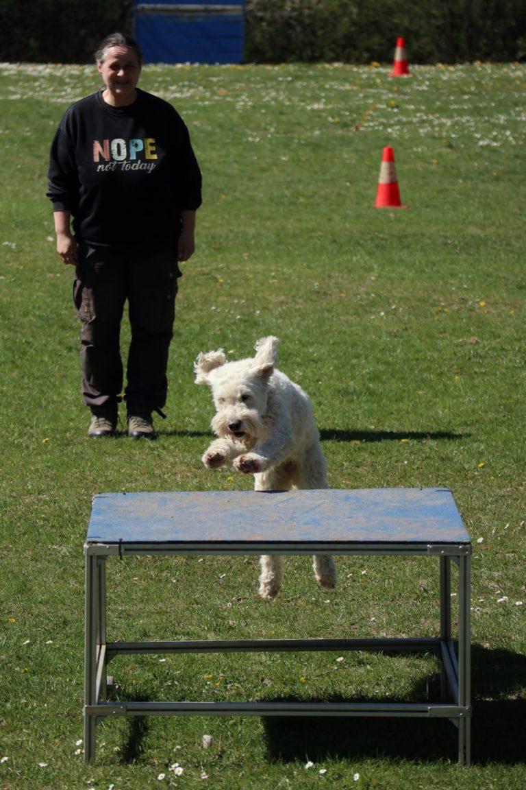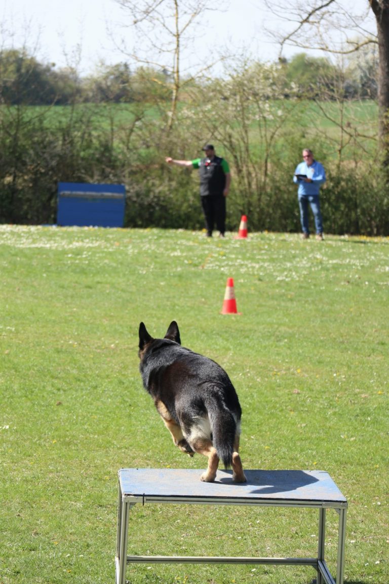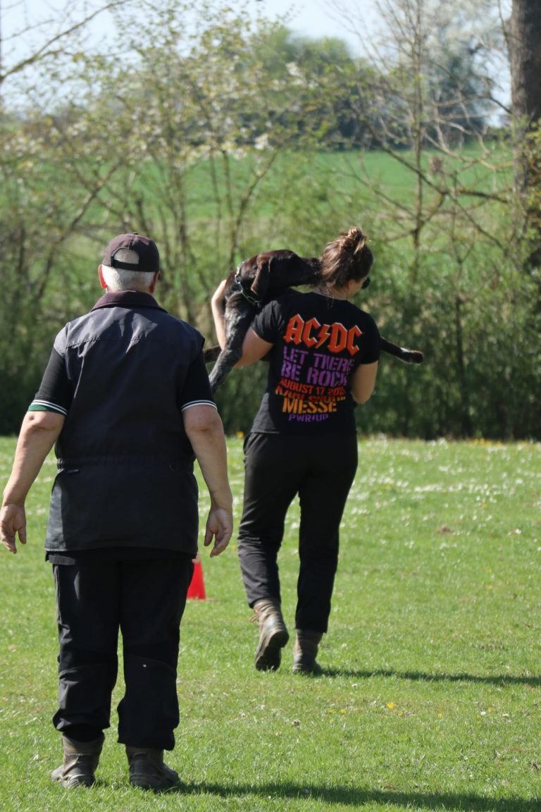 Im Anschluss wurde unser Vereinsgelände im Zimmerschlag zum Schauplatz der nächsten Prüfungsabschnitte. In den verschiedenen Stufen wurde den Hunden einiges abverlangt: Unterordnung, Tragen und Übergeben an fremde Personen, Apportieren von Gegenständen, Detachieren sowie Gerätearbeit standen auf dem Programm. Trotz der hohen Anforderungen zeigten alle Hunde sichtlich Freude an ihrer Arbeit und erzielten beachtliche Ergebnisse.