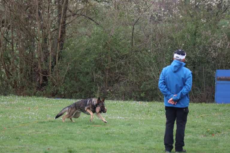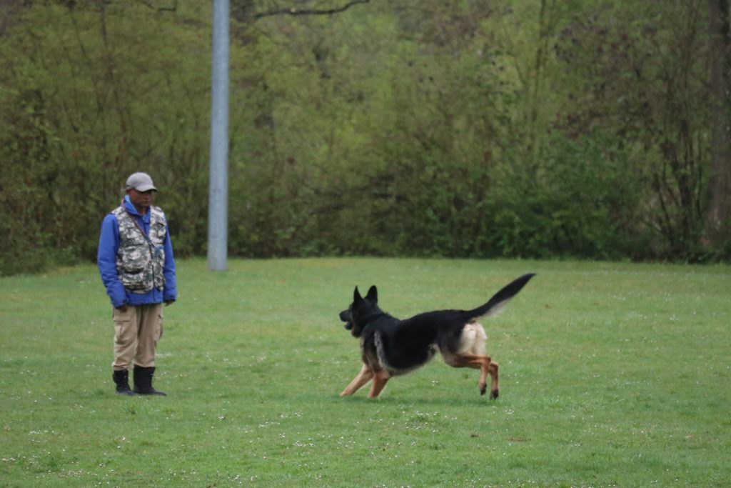 Am Sonntag, den 12. April, folgte der IGP-Bereich, der ebenfalls stark besetzt war. Besonders bemerkenswert war der Auftritt von Manfred Engel, der trotz seines hohen Alters seinen Hund Dobre vom Maurener Tal selbstständig ausbildet und erfolgreich vorführte. In der IFH1-Prüfung erreichten die beiden 87 Punkte und stellten damit die beste FH des Tages.