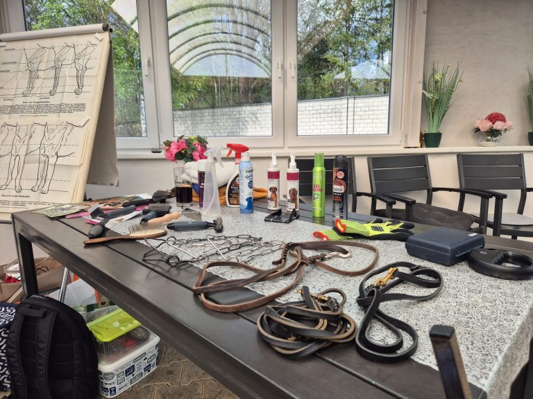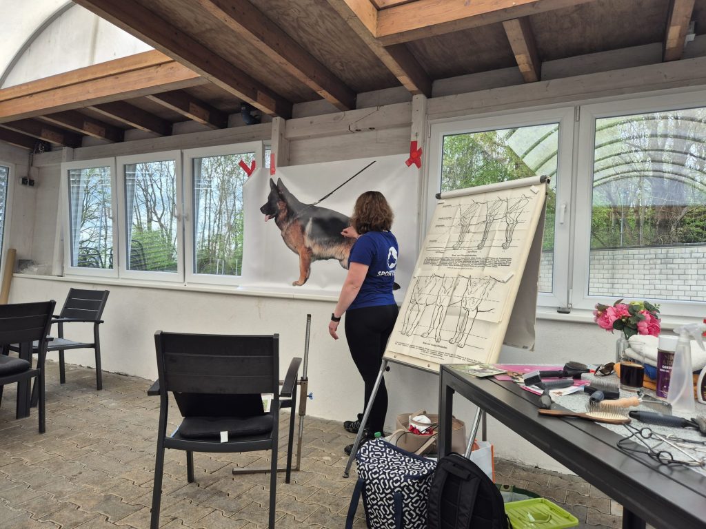 Anschließend standen die passenden Hilfsmittel im Fokus: von Schauleine und Schauhalsband über verschiedene Bürsten bis hin zu geeigneten Fellpflegeprodukten – kein Detail blieb unbeachtet.